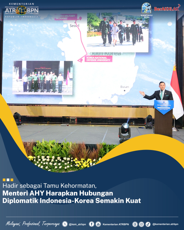 Jakarta - Menteri Agraria dan Tata Ruang/Kepala Badan Pertanahan Nasional (ATR/BPN), Agus Harimurti Yudhoyono (AHY) menjadi Tamu Kehormatan dalam acara National Foundation Day and Armed Forces Day Republik Korea pada Selasa (01/10/2024) di St. Regis Hotel Jakarta. Di momen ini, Menteri AHY harapkan hubungan diplomatik Indonesia-Korea akan semakin kuat.